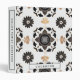 Modern cookbook binder for organizing your family's recipes, meal planning or other subject. Features a stylish kitchen tile design in a black and gold mandala floral pattern against a white background with customizable text presented on coordinating white banners.
