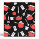 Cookbook | Black White & Red Kitchen Pattern 3 Ring Binder