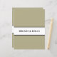 Custom double sided cookbook divider page for a coordinating recipe binder; one design of a matching set. Features a simple stylish minimalist design in a modern sage green color palette with customizable text presented on a coordinating white banner with black accents