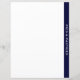 Custom double sided cookbook index divider page for a navy blue and white cookbook recipe binder matching set. Features a simple modern minimalist design in a navy and white color palette with customizable text presented on a coordinating banner.