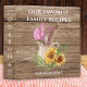 Personalized recipe book binder to keep your favorite family recipes . The rustic wood texture background with baking utensils and sunflower illustration makes the cookbook binder a keepsake holiday gift for family.