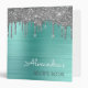 Silver Aqua Blue - Teal Faux Sparkle Dripping Glitter Brushed Metal Monogram Name Cookbook - Recipe Book Binder. This makes the perfect sweet 16 birthday, wedding, bridal shower, anniversary, baby shower or bachelorette party gift for someone that loves glam luxury and chic styles.