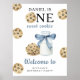 A Little Sweet Cookie. Watercolor kids birthday party. Watercolor cookies with chocolate and bottle milk with blue bow.