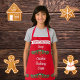 The words "Happy Holidays" and holiday symbols are on an apron for kids. Stylish clothes for a cookie-baking party in December. Put the names of your crew on it right away.