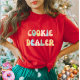 This "Cookie Dealer" women's t-shirt lets you show off your passion for baking. The fun, retro-inspired lettering on this tee is perfect for cookie lovers and bakers. A fun and stylish addition to your wardrobe or a great gift for any baking queen!
