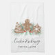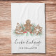 This Cookie Exchange Party kitchen towel is decorated with watercolor cookies, festive greenery, and berries.