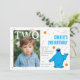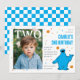 A lovable blue monster illustration stands beside the party details, bringing classic Sesame Street charm to the celebration. The oversized “TWO” layered across the photo creates a trendy focal point, allowing your little one’s picture to shine front and center. The customizable name and birthday details are arranged in a clean, modern layout that feels both playful and polished.