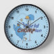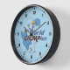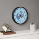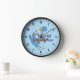 The size of the clock is dramatic and the abstract alcohol ink design is soothing and intricate at the same time. I chose the black frame that adds pop to the blue and gold design. The gold printing would be better in a slightly darker or larger font. I love it and I’m looking for just the right place in ny new apartment. I would recommend this clock for a personal gift or a present. I feel that the quality is excellent for the money! I’m a bit of a clock nut so I’m pretty particular about my purchases. The clock is larger in diameter than many if the clocks I have, so it stands out very well. I think a slightly darker printing color and a moderately larger size would best suit a professional decor or add more impact in a work place item.