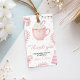 Sweet “Cookies & Cocoa” birthday favor tag featuring a pink hot cocoa mug and soft pastel winter elements. Perfect for attaching to party favors, gift bags, or treats. Editable text and charming cozy aesthetic.