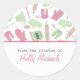 This product is made of a durable material that sticks to my boutique bags easily. The product is shiny so my customers notice it. This product gets a 5 out of 5! I love it! The printing is perfect and the design I chose almost looks like glitter at the top. What a great addition to my boutique bags! Now customers are reminded where they shopped and might come back to shop with me again at Crystal Threads. The print quality is a 5 out of 5, and looks beautiful!