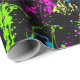 Cool Abstract Retro Rainbow Paint Splatter Black Wrapping Paper