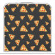 Cool and fun pizza slices pattern on dark gray. Juicy vector made pizza with crunchy crust, cheese, salami, champignon mushrooms, olives and a sprinkle of oregano.