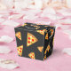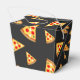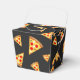 Cool and fun pizza slices pattern on dark gray. Juicy vector made pizza with crunchy crust, cheese, salami, champignon mushrooms, olives and a sprinkle of oregano.