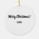 Lightweight, smooth, pure white ornament with nice sheen. Perfect size to be seen from across the room ... and to attract closer inspection! Price was great for ordering enough for the whole family! Clear, bold black design just as requested. Matches the order exactly. Just so nice!