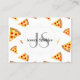 Personalize and customize elegant business card with your initial name and business information. Cool and fun pizza slices pattern on white - unique card for foodies, restaurateurs, pizzerias.. Juicy vector made pizza with crunchy crust, cheese, salami, champignon mushrooms, olives and a sprinkle of oregano.
