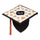 Cool and fun pizza slices pattern Monogram white Graduation Cap Topper