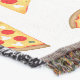 Cool and fun pizza slices pattern on white - unique gift for foodies, restaurateurs, pizzerias.. Juicy vector made pizza with crunchy crust, cheese, salami, champignon mushrooms, olives and a sprinkle of oregano.