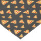 Cool and fun pizza slices pattern on dark gray tablecloth for birthday pizza party. Juicy vector made pizza with crunchy crust, cheese, salami, champignon mushrooms, olives and a sprinkle of oregano.