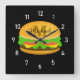 Cool and fun yummy burger Monogram and numbers Square Wall Clock