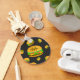 Cool and fun burger pattern on dark grey background. Yummy vector illustration made with toasty sesame bun with meat patty, salad, tomatos and cheese.