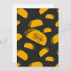 Cool and fun taco pattern on dark grey background. Yummy vector illustration made with toasty tortilla with meat, salad, tomatos and cabbage.