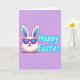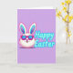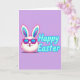The front design shows a stylized white bunny head set against a soft lilac background, with gentle shading that gives its rounded cheeks a tender, friendly look 🐰. Hot-pink sunglasses sit across its face, and the lenses shimmer with blue-to-purple reflections like shared glances on a fun night out. A small pink nose and an easy smile add a sweet, companionable mood without needing any extra details. The long ears rise above, each with inner panels split into bright aqua and magenta that echo the upbeat color palette. An electric pink glow traces the bunny’s outline, forming a neon halo that makes the character stand out from the calm purple setting 🌷. To the side of the bunny, a short holiday greeting appears in cool cyan, placed nearby so it feels like it’s speaking right to the character. The text uses rounded, flowing lettering and looks softly illuminated, balancing the pink outline with a matching glow. The sunglasses frames are fuchsia, the ear interiors alternate aqua and magenta, and the greeting sits in cyan near the bunny on the lilac field.
