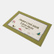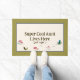 Fun customizable door mat features "Super cool Aunt lives here" and "just sayin' ..." text with simple floral elements and framed background. Personalize for your favorite aunt, friend or other special person.