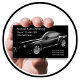 Automotive detailing business cards in a cool design presented on large format card stock taller than standard size in classic black with car in the background and simple layout you can customize to suit your mobile detailing services and the design also works well for any automobile industry service.