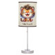 The lamp looks exactly like the picture, bright and colorful. The lamp shade is plastic not what I expected, however I love it! The printing is clear and the name can easily be read.