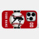 Cool, Baseball Phone Case with Name and Number. You can CHANGE the Red Background and White Text or Delete the Text or Any Design Layer. Click "Personalize" Button. Type in his Name and Jersey Number or Delete it. CLICK "EDIT using DESIGN TOOL" to CHANGE the RED and WHITE Background and Text Color or to Delete any of the Design Layers.