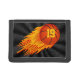 Cool Basketball Wallet w/Flaming Flying Basketball. Black Tri-Fold Customizable Wallets. ADD your Jersey Number or Monogram Wallet.