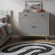 Beautiful contemporary image of auto racing flags design on a black and white checkered background. This whimsical hipster design is made for the stylish race car sport lover, racing fan, the popular hip trend setter, vintage retro or modern abstract geometric motif lover.