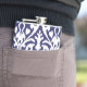 Cool blue and white ikat tribal pattern hip flask