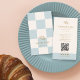 Cool Blue Checkered Cafe Croissant QR Bakery Business Card