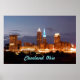 The Terminal Tower in Cleveland, Ohio has lights of many colors through the year, for many occasions- here is the city skyline of Cleveland, Ohio with the Terminal Tower lights in blue. The photo is caught at evening, just as the lights come on in Downtown Cleveland, Ohio.