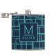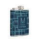 Cool Blue Geometric Grid Pattern Monogrammed Flask