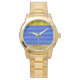 Cool Blue Gold Geometric Stripes Watch