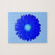 This awesome puzzle features a photograph of a marigold flower that has been manipulated to create a beautiful dark blue flower with a bright blue centre. The flower is on a pale blue background.