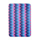 A medium size, bath mat featuring a pretty, colorful pattern design of blue and pink chevrons.