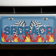 Cool Blue SPDRACR Race Flags and Flames License Plate