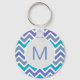 Cool Blue Sporty Chevron Pattern Monogram Keychain