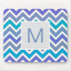 Cool Blue Sporty Chevron Pattern Monogram Mouse Pad