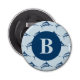 Cool navy blue swordfish pattern on light blue monogrammed bottle opener.