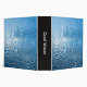 A binder with a black and white photo of water condensed on glass.