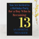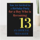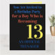 Cool You Are 13 - Official Teenager Boy Birthday Invitation Card. Colored in yellow, blue, and orange. With elegant script invite info inside. Customize it with your own personal information and enjoy the party! @Miri Creations - Created For You Only with You in Mind. Please contact me if you need any help with the customization.
