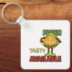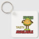 The key chain is made of metal and really sturdy. The flower design is really cheerful. The logo and colors are clear and crisp!
