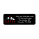 Shows two mountain peaks, Canada below them, and a Canadian maple leaf above the mountains. Cool, slick white and red design, both retro and modern at the same time. Customize the name and address.