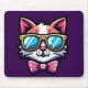 Upgrade your workspace with this playful mouse pad featuring a cartoon-style cat wearing oversized yellow sunglasses with blue lenses and a pink polka-dot bow tie. Set against a bold purple background, this vibrant design adds personality and charm to any desk. Perfect for cat lovers, creatives, and anyone who enjoys quirky, eye-catching office accessories.