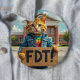 This is a cool cat button would be a great item to wear at your next protest rally or even your first.