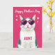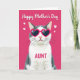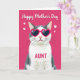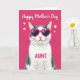 This card features a cute cat centered on a bright fuchsia background, with a white chest and dark gray markings around its head and body. The cat wears pink heart-shaped glasses with dark lenses, giving it a flirty, friendly look that feels like it’s made for sharing affection ❤️. A small rosy nose and fine whiskers add a gentle, lifelike touch to the stylized face, as if the cat is quietly admiring someone close by. Near the top, a celebratory message appears in white flowing lettering, with a few small white hearts floating nearby like little sparks of romance. Just below the cat, a short family-style term of endearment is written in hot pink lettering that echoes the color of the glasses 🌼. The strong contrast between the vivid background and the soft fur shading keeps the character and text easy to notice at a glance. The upper area is dotted with tiny white heart icons, while the cat and the hot pink word sit neatly stacked in the center.